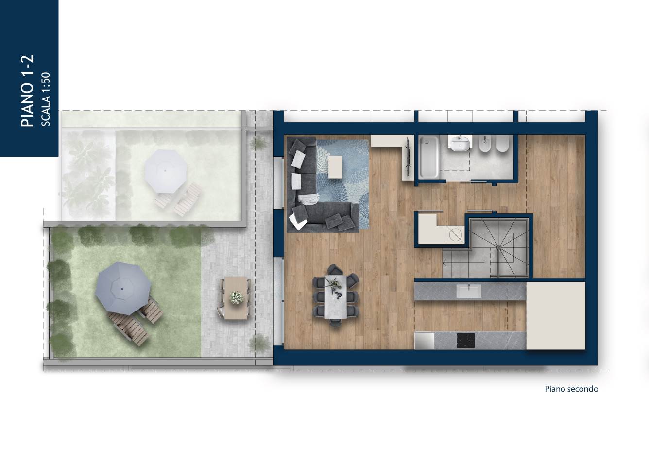 Le finiture, accuratamente selezionate, privilegeranno materiali di qualità e design contemporaneo, garantendo funzionalità, durabilità e valore nel tempo.