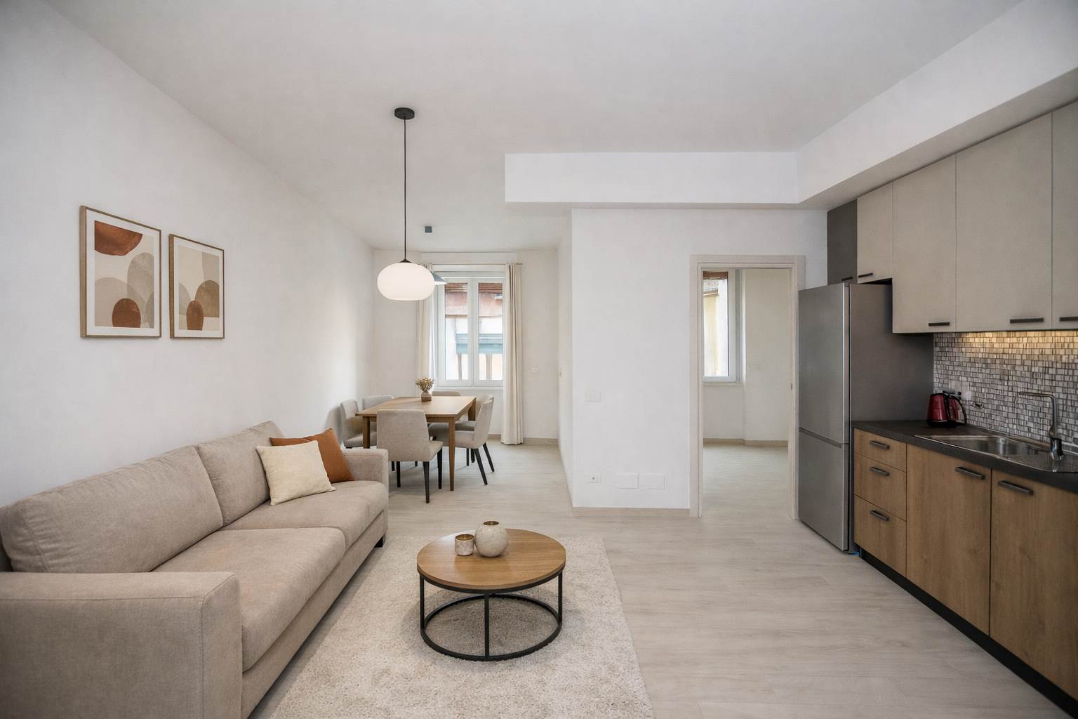 L’appartamento si distingue per un layout razionale e moderno, con: